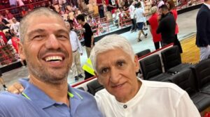 Ο Τζέντι Όσμαν βρέθηκε στο κλειστό του Περιστερίου για να παρακολουθήσει το παιχνίδι κόντρα στην Μανίσα για το FIBA Champions League.