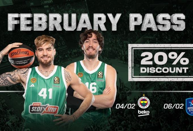 Η ΚΑΕ Παναθηναϊκός AKTOR ενημέρωσε τους φιλάθλους της ομάδας πως τέθηκε σε κυκλοφορία το μηνιαίο πακέτο εισιτηρίων, February Pass.