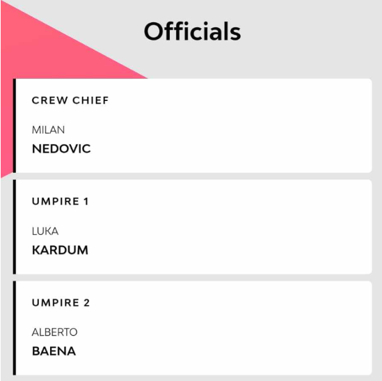 Συγκεκριμένα πρώτος διαιτητής θα είναι ο Μίλαν Νέντοβιτς ενώ την τριάδα θα την συμπληρώσουν οι Λούκα Καρντούμ και Αλμπέρτο Μπαένα.