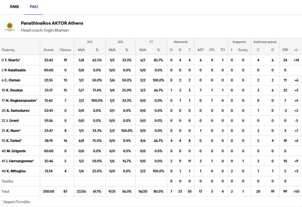 Ο Παναθηναϊκός στο πρώτο ημίχρονο σε μία απίθανη επίδοση δεν έκανε καν λάθος, ενώ στην επανάληψη είχε μόλις 4, την ίδια στιγμή που μοίρασε 17 ασίστ και μέτρησε 3 κλεψίματα.