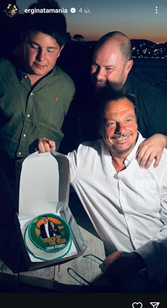 Πιο συγκεκριμένα το δώρο ήταν η μια φοβερή τούρτα η οποία είχε πάνω την φωτογραφία του και έγραφε: ”Ο προπονητής της χρονιάς”