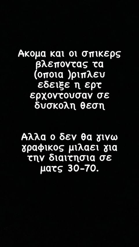 «Ακόμα και οι σπίκερς βλέποντας τα (όποια) ριπλέι έδειξε η ΕΡΤ, ερχόντουσαν σε δύσκολη θέση. Αλλά δεν θα γίνω ο γραφικός που μιλάει για τη διαιτησία σε ματς 30-70.Η διαιτησία ήταν στα επίπεδα του πρώτου αγώνα στο ΟΑΚΑ, απλά σήμερα παίξαμε καλύτερα»,