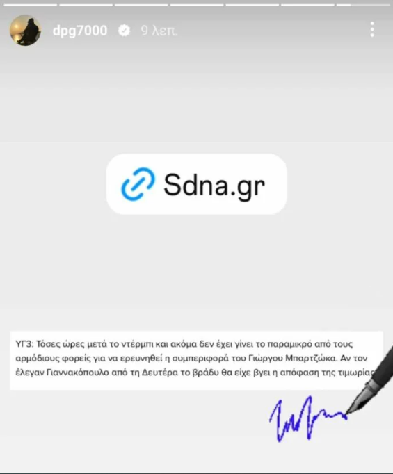 «Τόσες ώρες μετά το ντέρμπι και ακόμα δεν έχει γίνει το παραμικρό από τους αρμόδιους φορείς για να ερευνηθεί η συμπεριφορά του Γιώργου Μπαρτζώκα.