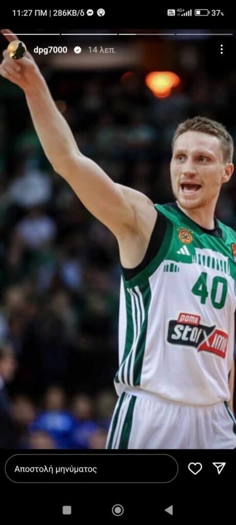 Ο Δημήτρης Γιαννακόπουλος μέσω Instagram story ανέβασε φωτογραφία του Μάριους Γκριγκόνις μετά την ανανέωση του Λιθουανού γκαρντ.