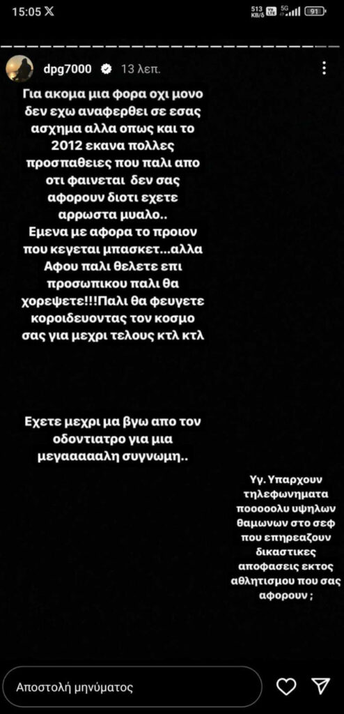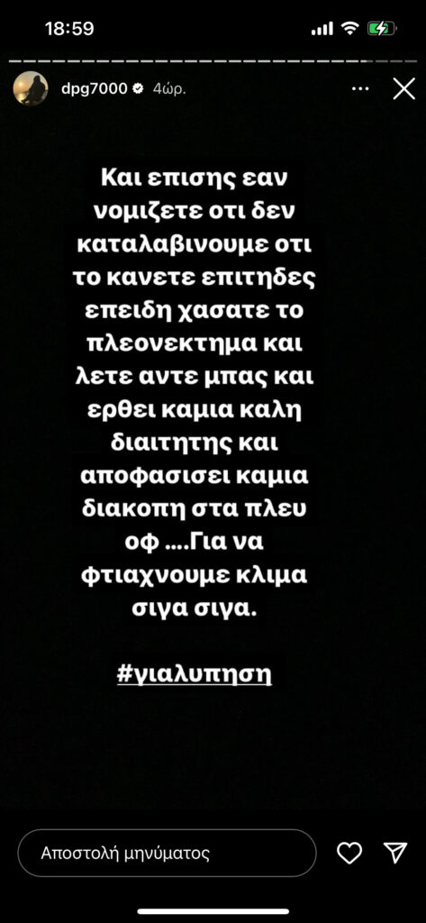 Αναλυτικά όσα έγραψε ο Δημήτρης Γιαννακόπουλος σε story του στο Instagram: