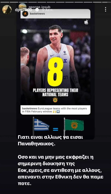 Ο Δημήτρης Γιαννακόπουλος σχολίασε μέσα από τα social media την συμμετοχή των παικτών του Παναθηναϊκού στην Εθνική Ελλάδος.