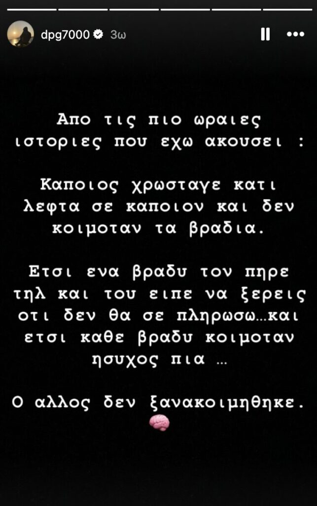 Έτσι ένα βράδυ τον πήρε τηλ και του είπε να ξέρεις ότι δεν θα σε πληρώσω… και έτσι κάθε βράδυ κοιμόταν ήσυχος πια…