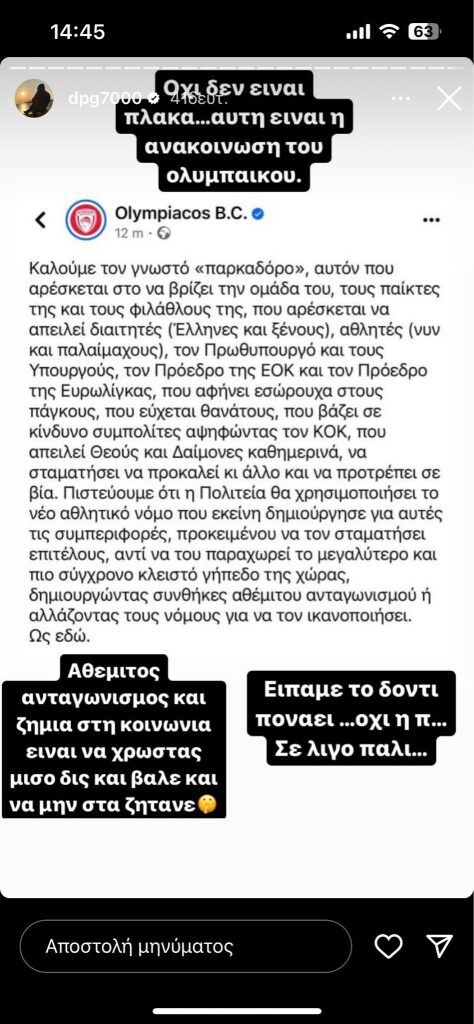 Ο Δημήτρης Γιαννακόπουλος πολύ γρήγορα απάντησε στην ανακοίνωση της ΚΑΕ Ολυμπιακός μέσα από τα social media.