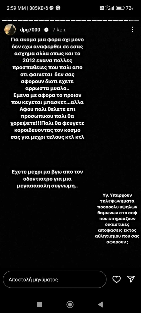 Εμένα με αφορά το προϊόν που λέγεται μπάσκετ… Αλλά αφού πάλι θέλετε επί προσωπικού, πάλι θα χορέψετε! Πάλι θα φεύγετε κοροϊδεύοντας τον κόσμο σας για μέχρι τέλους κτλ κτλ. Έχετε μέχρι να βγω από τον οδοντίατρο για μια μεγάαααααλη συγγνώμη.