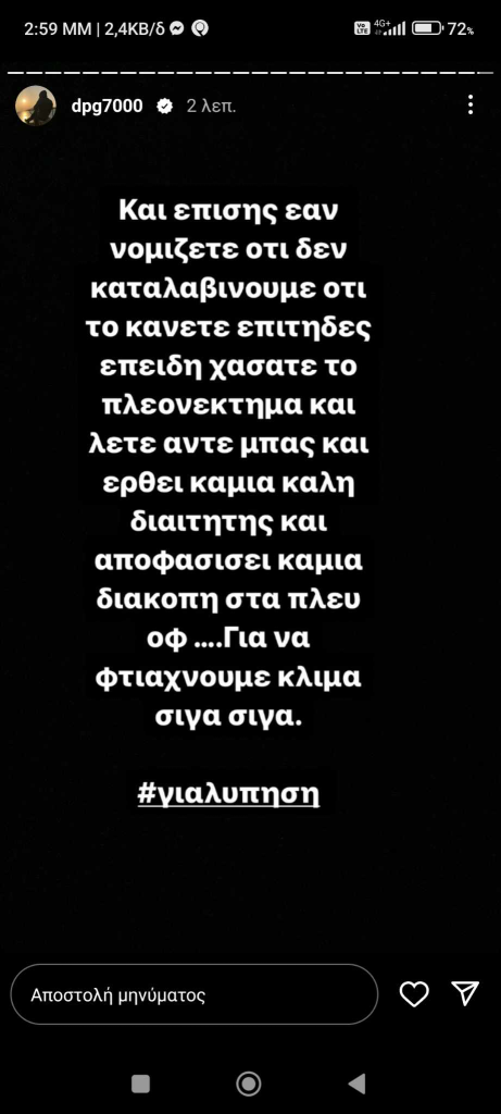 «Αθέμιτος ανταγωνισμός και ζημιά στην κοινωνία είναι να χρωστάς μισό δις και βάλε και να μην στα ζητάνε» προσέθεσε στην συνέχεια, για να κλείσει λέγοντας: «Είπαμε το δόντι πονάει, όχι η π…α. Σε λίγο πάλι…».