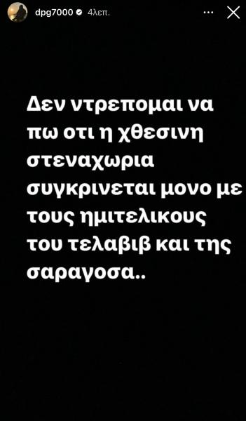 Ο Δημήτρης Γιαννακόπουλος μέσω Instagram story εξέφρασε την στεναχώρια του για τον χαμένο αγώνα στο ΣΕΦ.