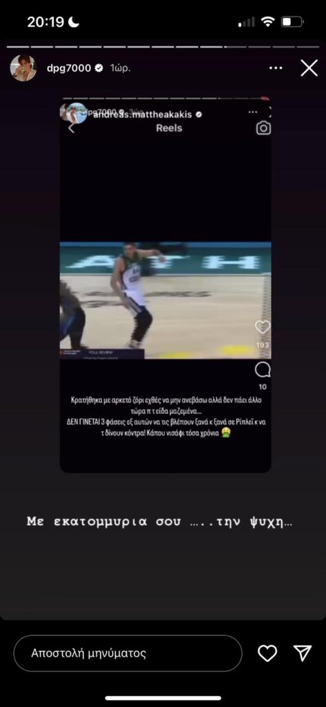 Ο Δημήτρης Γιαννακόπουλος έγραψε στο Instagram: