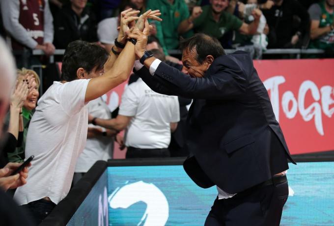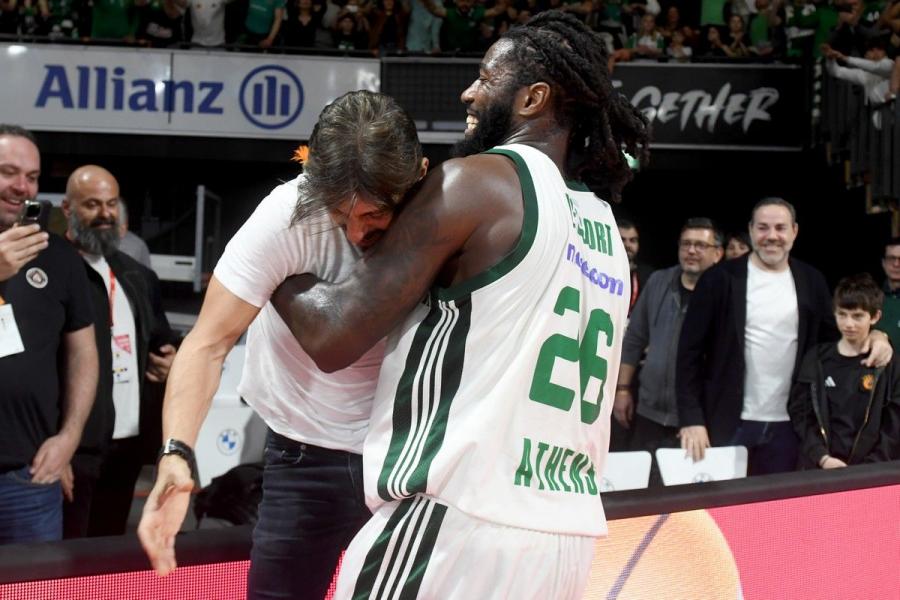 Ο Δημήτρης Γιαννακόπουλος μετά την νίκη του Παναθηναϊκού πανηγύρισε με τον Εργκίν Αταμάν αλλά και με τον Ματίας Λεσόρ.
