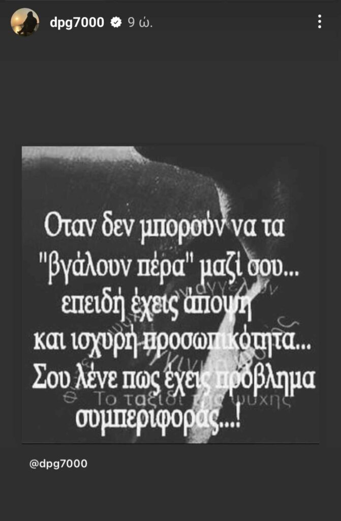 Ο Δημήτρης Γιαννακόπουλος προχώρησε μέσω Instagram story σε μία αινιγματική ανάρτηση χωρίς να ξεκαθαρίζει σε αυτόν που απευθύνεται.