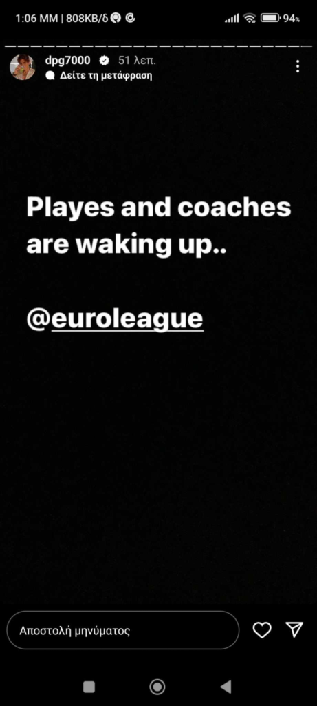 «Παίκτες και προπονητές ξυπνάνε», κάνοντας tag το προφίλ της Ευρωλίγκα.