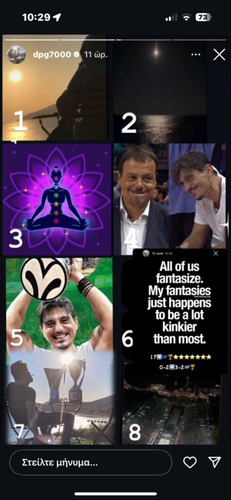 Μέσω του προσωπικού του λογαριασμού στο Instagram, ο Δημήτρης Γιαννακόπουλος μοιράστηκε τη χαρά του για τις επιτυχίες της ομάδας, δημοσιεύοντας ένα κολάζ από οκτώ φωτογραφίες. Οι εικόνες αυτές απαθανατίζουν σημαντικές στιγμές της ομάδας μπάσκετ, με έμφαση στο ομαδικό πνεύμα, τη σκληρή δουλειά των παικτών και την αφοσίωση των φιλάθλων.
