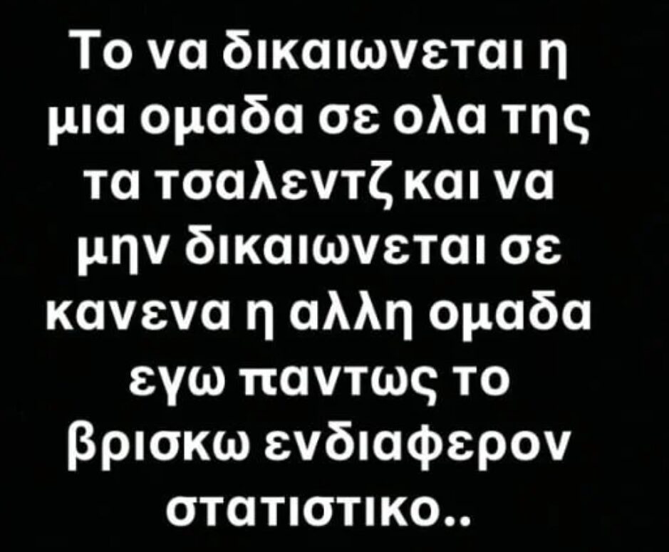 «Το να δικαιώνεται η μια ομάδα σε όλα της τα τσαλεντζ και να μην δικαιώνεται σε κανένα η άλλη ομάδα εγω παντως το βρίσκω ενδιαφέρον στατιστικό..»