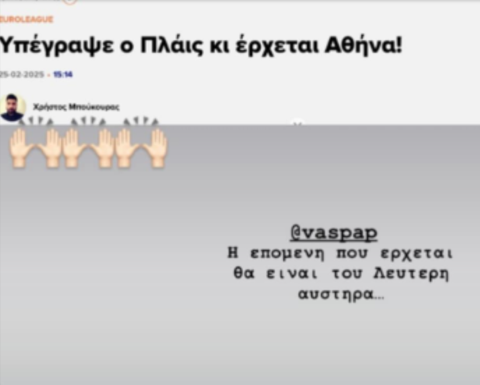Ο Δημήτρης Γιαννακόπουλος μέσα από τον προσωπικό του λογαριασμό στα social media δεν αρκέστηκε μόνο στην επιβεβαίωση της μεταγραφής του Πλάις, αλλά άρχισε και τη συζήτηση για το επόμενο βήμα.