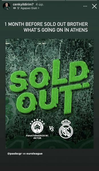 Ο Τσενκ Γιλντιρίμ, μέσω ανάρτησής του στο Instagram, σχολίασε το γεγονός, γράφοντας χαρακτηριστικά: «Sold out ένα μήνα πριν. Αδελφέ, τι γίνεται στην Αθήνα;». Το σχόλιο αυτό αντικατοπτρίζει την έκπληξη του ίδιου, αλλά και την απίστευτη στήριξη που προσφέρει ο κόσμος του Παναθηναϊκού στην ομάδα του.