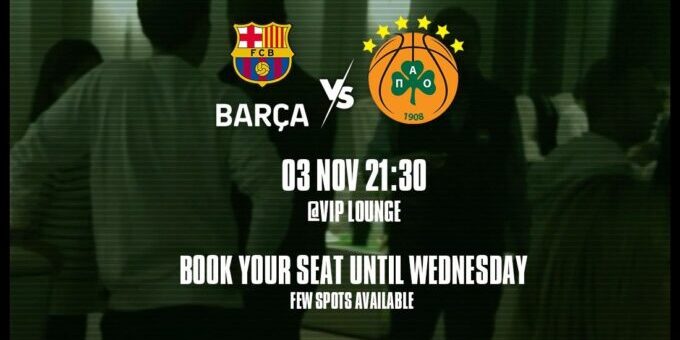 Η ΚΑΕ Παναθηναϊκός δίνει την δυνατότητα να πας στην VIP Lounge του ΟΑΚΑ πριν το παιχνίδι με την Μπαρτσελόνα και να μιλήσεις με τους παίκτες που είναι εκτός αποστολής.