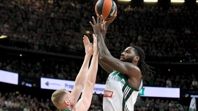 Ο Ματίας Λεσόρ με το σκορ 27-29 διεκδίκησε την μπάλα σε ένα jumpball κόντρα στον Σάμνερ με τον Γάλλο σέντερ του Παναθηναϊκού να συγκρούεται με τον διαιτητή.