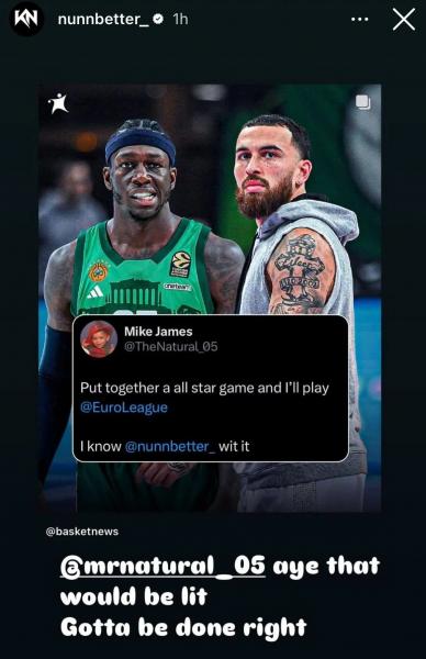 Ο Κέντρικ Ναν μέσα από τον προσωπικό του λογαριασμό στα social media απάντησε στον Μάικ Τζέιμς για την πρόταση που έκανε με ενδεχόμενο All Star Game της EuroLeague.