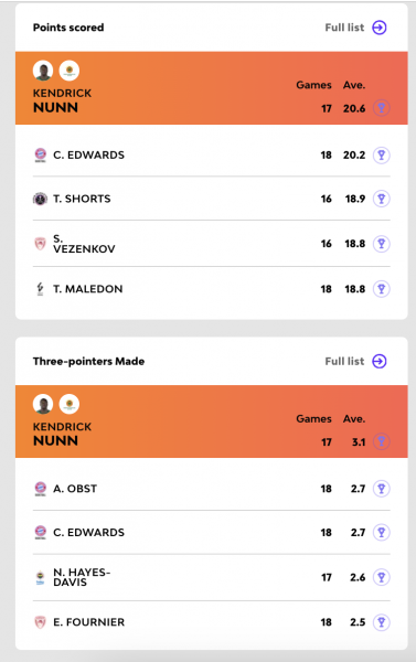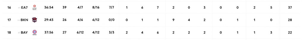 Η επιστροφή του Κέντρικ Ναν μετά την τιμωρία του ήταν εκρηκτική. Ο «μπόμπερ» του Παναθηναϊκού AKTOR σημείωσε τρεις συνεχόμενες μεγάλες εμφανίσεις, καταγράφοντας κατά μέσο όρο 30,6 πόντους ανά παιχνίδι. Στην Αρμάνι Μιλάνο έβαλε 39 πόντους με 8 τρίποντα, ενώ ακολούθησαν 26 πόντοι απέναντι στη Μπασκόνια και 27 πόντοι στην Μπάγερν Μονάχου, οδηγώντας την ομάδα του σε ισάριθμες νίκες.