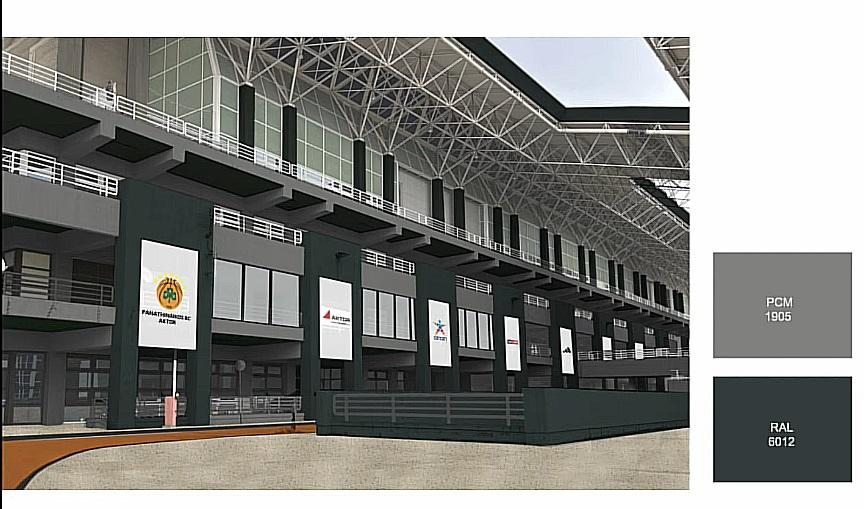 Όλα τα κάγκελα στο γήπεδο θα είναι γκρι και τα καθίσματα πράσινα, ενώ θα μπει και το έμβλημα της ομάδας σε μία από τις πλευρές.