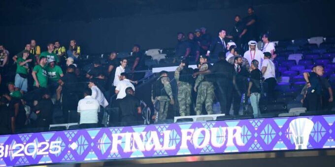 Περίπου μία ώρα πριν το τζάμπολ του μικρού τελικού του Final Four 2025, η ατμόσφαιρα στην εξέδρα της Etihad Arena φορτίστηκε έντονα, όταν οι οπαδοί των δύο «αιωνίων» αντάλλαξαν φραστικές επιθέσεις. Η λεκτική αντιπαράθεση λίγο έλειψε να ξεφύγει, όμως η άμεση επέμβαση των υπευθύνων ασφαλείας απέτρεψε τα χειρότερα.