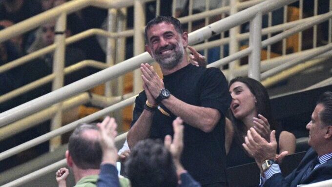 Ο άλλοτε αρχηγός του ποδοσφαιρικού Παναθηναϊκού και της Εθνικής ομάδας ανταπέδωσε το ζεστό χειροκρότημα και πήρε τη θέση του στις θέσεις του ΟΑΚΑ για να δει το παιχνίδι.
