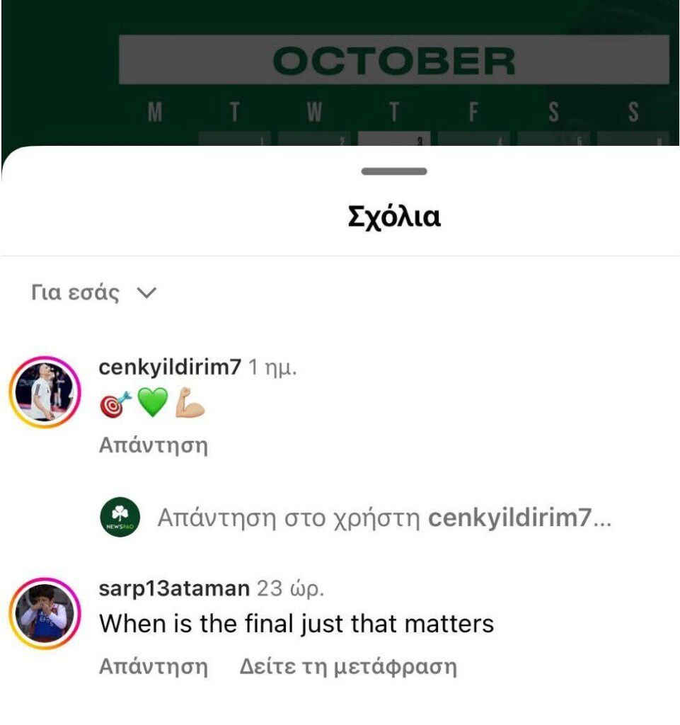 Ο Παναθηναϊκός έκανε γνωστό στο Instagram το πρόγραμμα της νέας σεζόν στην EuroLeague και στα ευρωπαϊκά παρκέ. Ο Σαρπ Αταμάν, γιός του προπονητή της ομάδας, δεν έχασε την ευκαιρία και σχολίασε κάτω από αυτή την ανάρτηση που έκανε ο Παναθηναϊκός, κάτι που φανερώνει τις διαθέσεις όλων των ανθρώπων στην ομάδα.