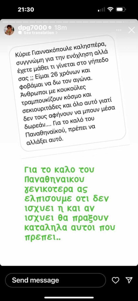 Ο ισχυρός άνδρας της ΚΑΕ Παναθηναϊκός μάλιστα ανέβασε δύο ιστορίες στον προσωπικό του λογαριασμό στο instagram σχολιάζοντας το περιστατικό.