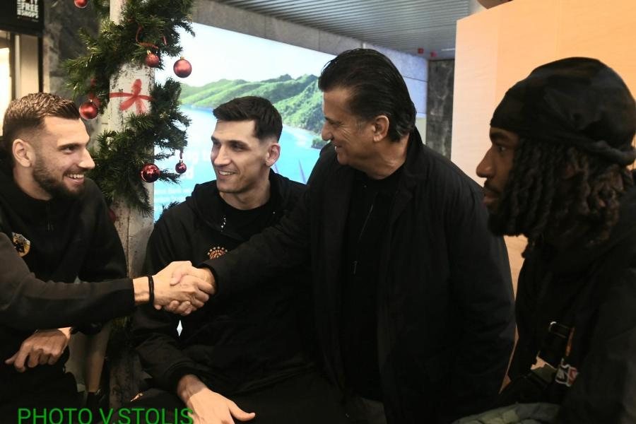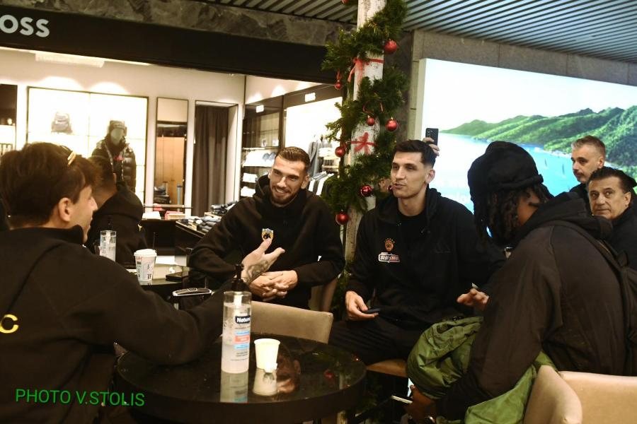 Οι παίκτες των δύο ομάδων τα είπαν μάλιστα σε εξαιρετικό κλίμα, ενώ ειδικά ο Ντίνος Μήτογλου είχε την ευκαιρία να τα πει με τον αδερφό του Σίμο, ο οποίος αγωνίζεται φυσικά στην Ένωση.