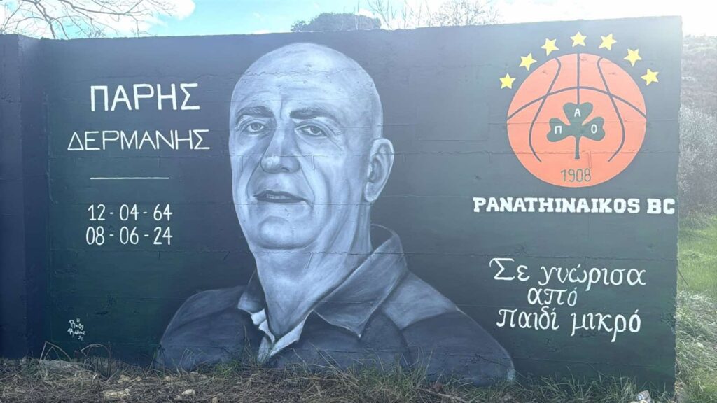 Το γκράφιτι που δημιουργήθηκε προς τιμήν του θρυλικού φροντιστή του Παναθηναϊκού, Πάρη Δερμάνη, επανήλθε στην αρχική του μορφή, αφού οι φθορές που είχαν προκληθεί αποκαταστάθηκαν άμεσα. Ο Δερμάνης, που αποτέλεσε μια εμβληματική μορφή για τον σύλλογο, «έφυγε» από τη ζωή σε ηλικία 60 ετών, με τους φίλους του τριφυλλιού να τιμούν τη μνήμη του μέσω αυτού του συμβολικού έργου.