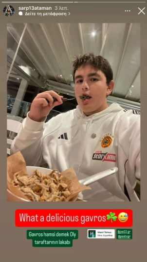 Σε μια άκρως χιουμοριστική κίνηση, ο γιος του προπονητή του Παναθηναϊκού, Εργκίν Αταμάν, Σαρπ, δημοσίευσε στα social media μια φωτογραφία όπου απολαμβάνει φρέσκο γαύρο.