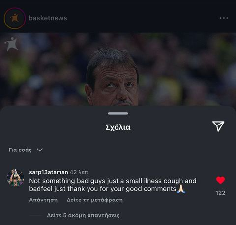 Με ένα σχόλιο που άφησε σε post του BasketNews ο Σαρπ Αταμάν ενημέρωσε τον κόσμο του Παναθηναϊκού για την κατάσταση του πατέρα του, Εργκίν Αταμάν.