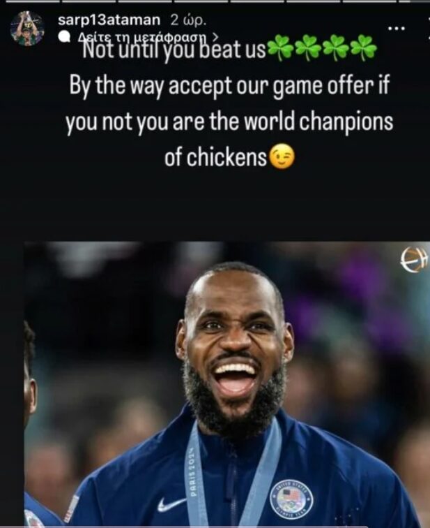 Ο Σαρπ Αταμάν μέσα από τον προσωπικό του λογαριασμό στο Instagram προκάλεσε την Team USA να αποδεχτεί την προσφορά του Παναθηναϊκού αν θέλουν να λέγονται παγκόσμιοι πρωταθλητές.