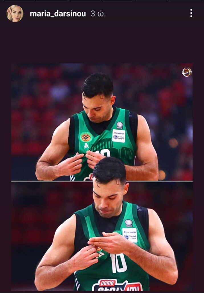 Η σύζυγος του Κώστα Σλούκα, Μαρία Δαρσινού ανέβασε μια φωτογραφία του αρχηγού του Παναθηναϊκού, στην οποία έδειχνε το σήμα και τα 7 αστέρια της ομάδας του, στους φίλους του Ολυμπιακού την ώρα που όλο το γήπεδο τον έβριζε.