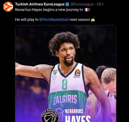 Δείτε την ανακοίνωση της EuroLeague για την μεταγραφή του Χέιζ στην Παρί: