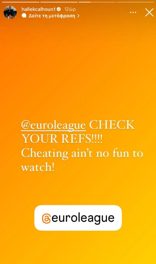 «EuroLeague, δείτε τους διαιτητές σας! Δεν είναι ωραίο να βλέπεις να σε κλέβουν!» έγραψε η σύντροφος του Αμερικανού γκαρντ της Μακάμπι Τελ Αβίβ, ο οποίος είχε εξαιρετική παρουσία στην σειρά κόντρα στον Παναθηναϊκό.