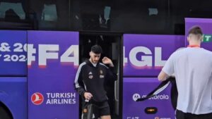 Η αποστολή του Παναθηναϊκού αφίχθει στην Uber Arena όπου θα αντιμετωπίσει σε λίγο την Φενέρμπαχτσε για τον πρώτο ημιτελικό.